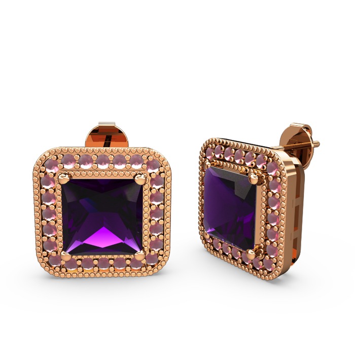 Ametist ve kök yakut 925 ayar rose altın kaplama gümüş küpe