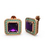 Ametist ve kök zümrüt 8 ayar rose altın küpe
