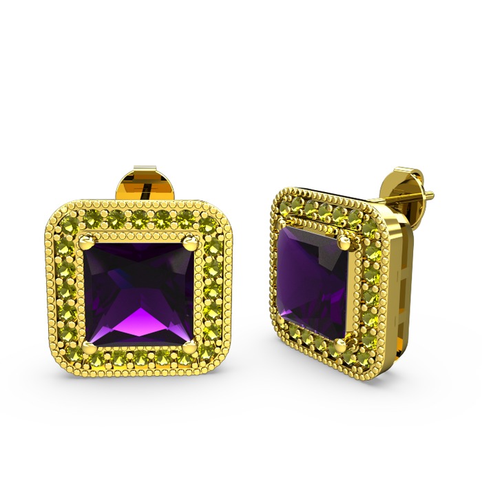 Ametist ve peridot 14 ayar altın küpe