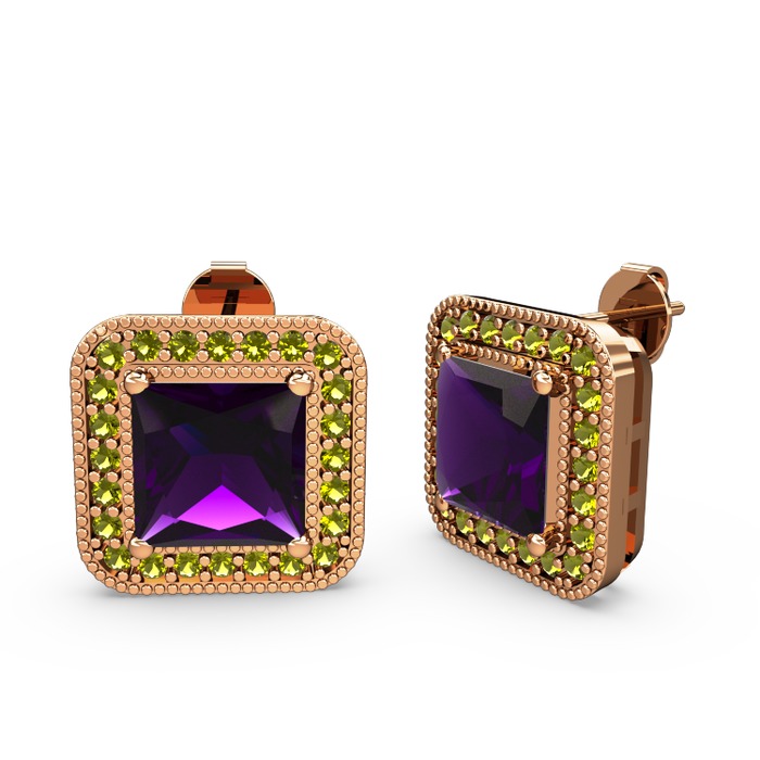 Ametist ve peridot 925 ayar rose altın kaplama gümüş küpe