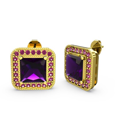 Ametist ve rodolit garnet 925 ayar altın kaplama gümüş küpe