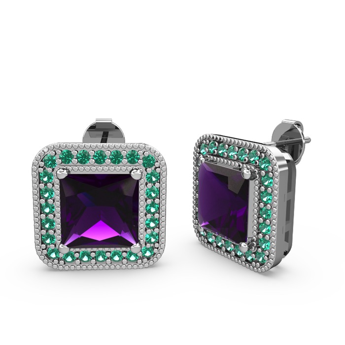 Ametist ve yeşil kuvars 18 ayar beyaz altın küpe