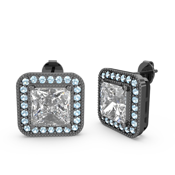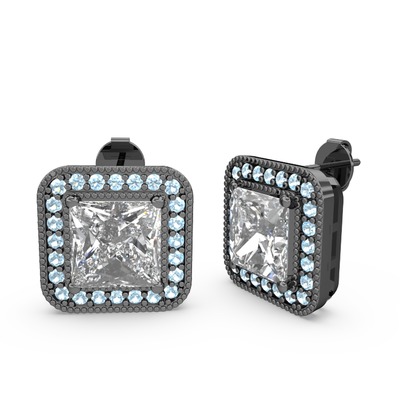 Beyaz zirkon ve akuamarin 925 ayar siyah rodyum kaplama gümüş küpe