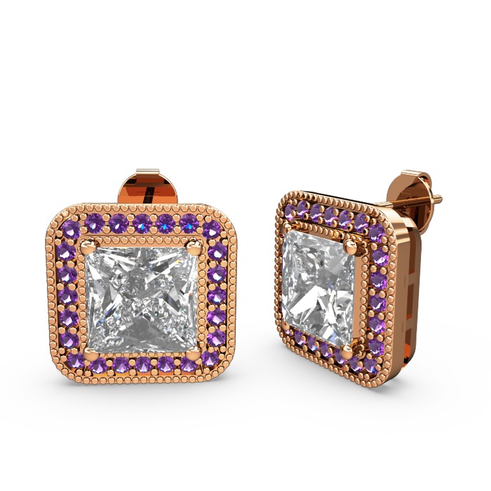 Beyaz zirkon ve ametist 8 ayar rose altın küpe