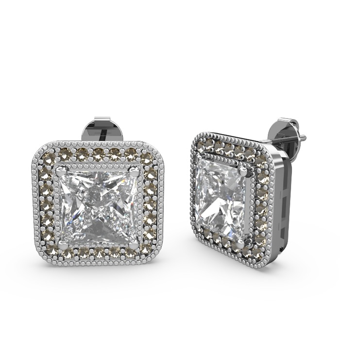 Beyaz zirkon ve dumanlı kuvars 14 ayar beyaz altın küpe