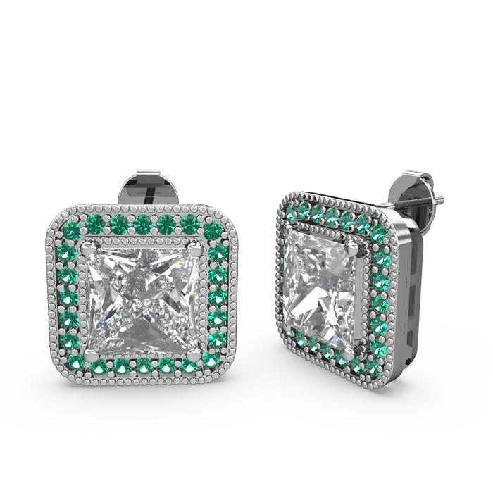 Beyaz zirkon ve yeşil kuvars 14 ayar beyaz altın küpe