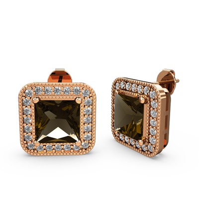 Dumanlı kuvars ve beyaz zirkon 14 ayar rose altın küpe