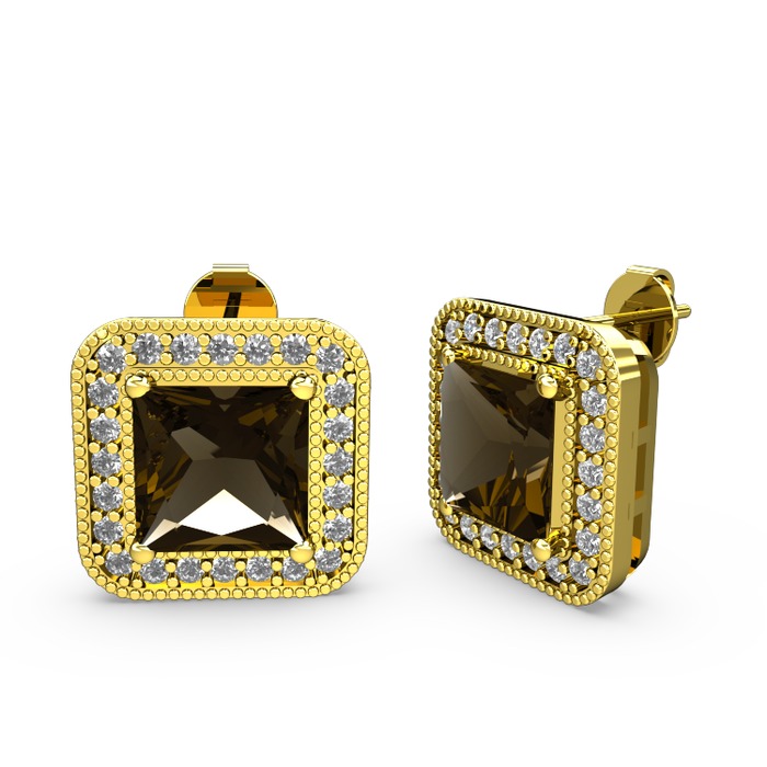 Dumanlı kuvars ve pırlanta 925 ayar altın kaplama gümüş küpe (0.528 karat)