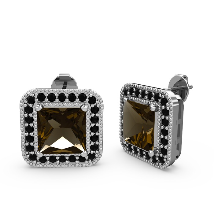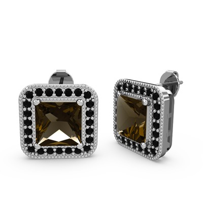 Dumanlı kuvars ve siyah zirkon 14 ayar beyaz altın küpe
