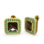 Dumanlı kuvars ve yeşil kuvars 925 ayar altın kaplama gümüş küpe