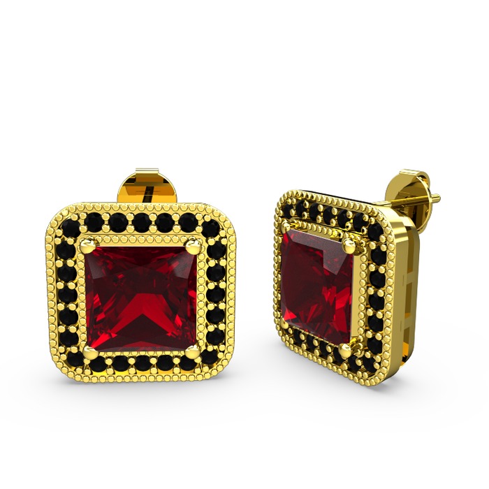Garnet ve siyah zirkon 14 ayar altın küpe