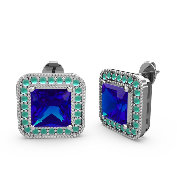Lab safir ve kök zümrüt 925 ayar gümüş küpe