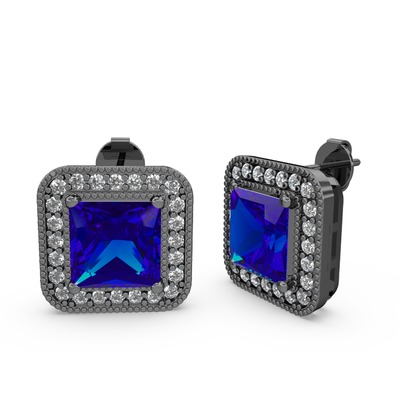 Lab safir ve pırlanta 925 ayar siyah rodyum kaplama gümüş küpe (0.528 karat)