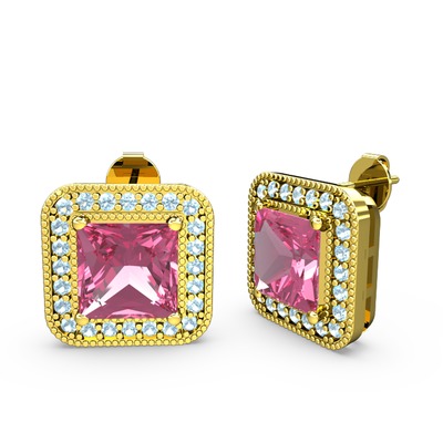 Pembe kuvars ve akuamarin 925 ayar altın kaplama gümüş küpe