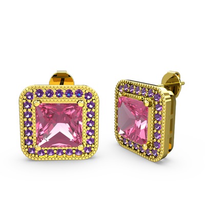 Pembe kuvars ve ametist 8 ayar altın küpe