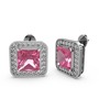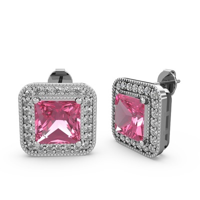 Pembe kuvars ve beyaz zirkon 14 ayar beyaz altın küpe