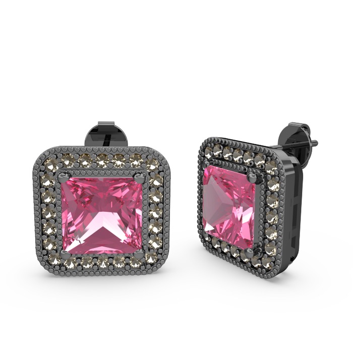 Pembe kuvars ve dumanlı kuvars 925 ayar siyah rodyum kaplama gümüş küpe