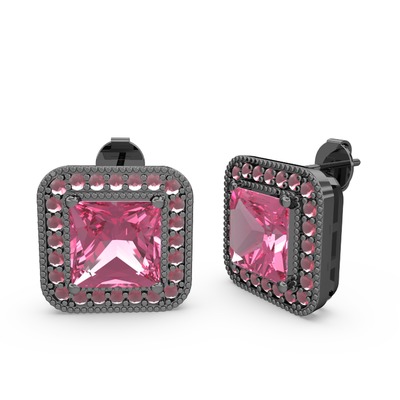 Pembe kuvars ve kök yakut 925 ayar siyah rodyum kaplama gümüş küpe