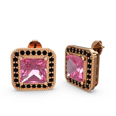 Pembe kuvars ve siyah zirkon 18 ayar rose altın küpe