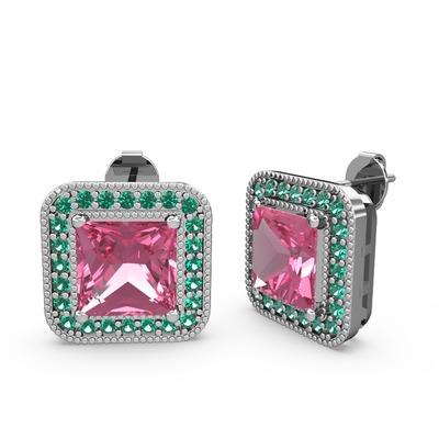 Pembe kuvars ve yeşil kuvars 14 ayar beyaz altın küpe