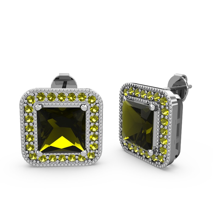 Peridot 14 ayar beyaz altın küpe