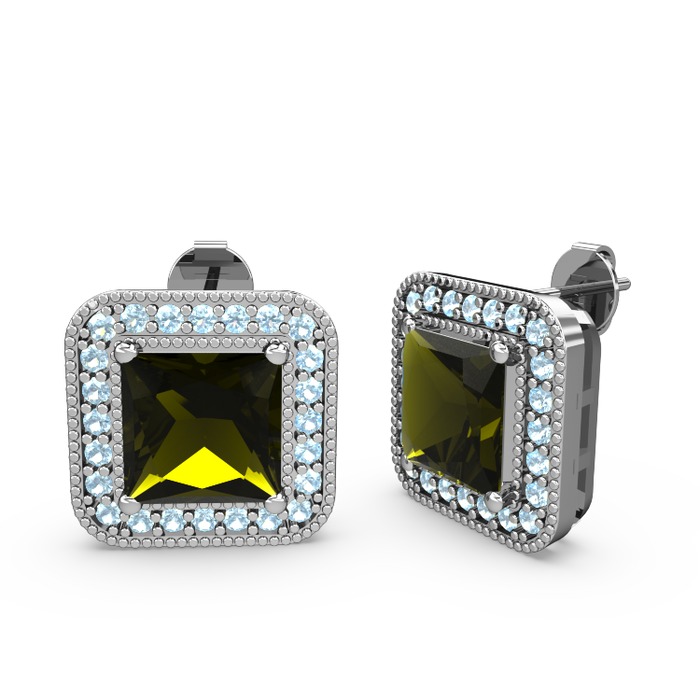 Peridot ve akuamarin 18 ayar beyaz altın küpe