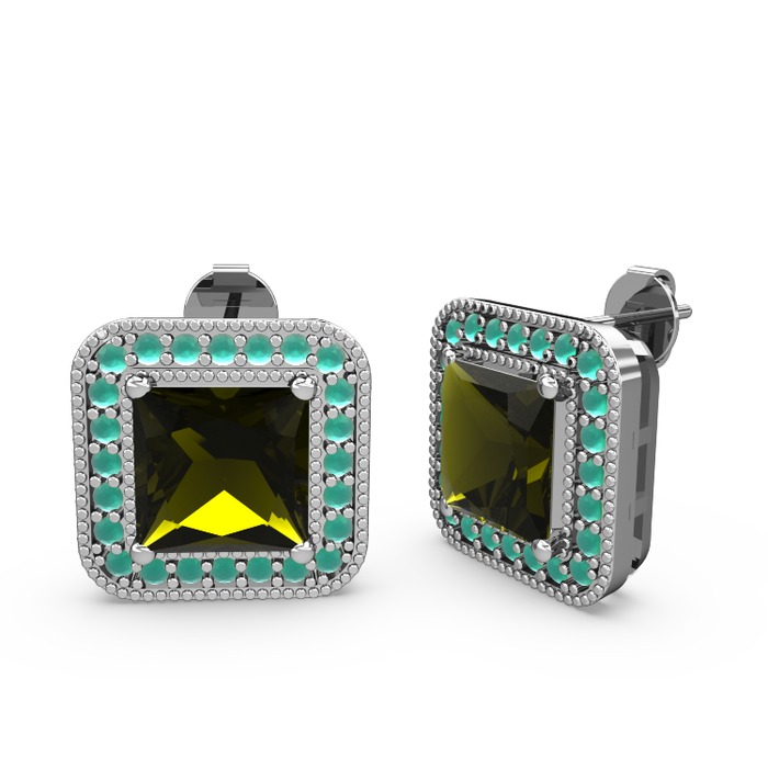 Peridot ve kök zümrüt 925 ayar gümüş küpe