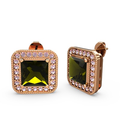 Peridot ve pembe kuvars 925 ayar rose altın kaplama gümüş küpe