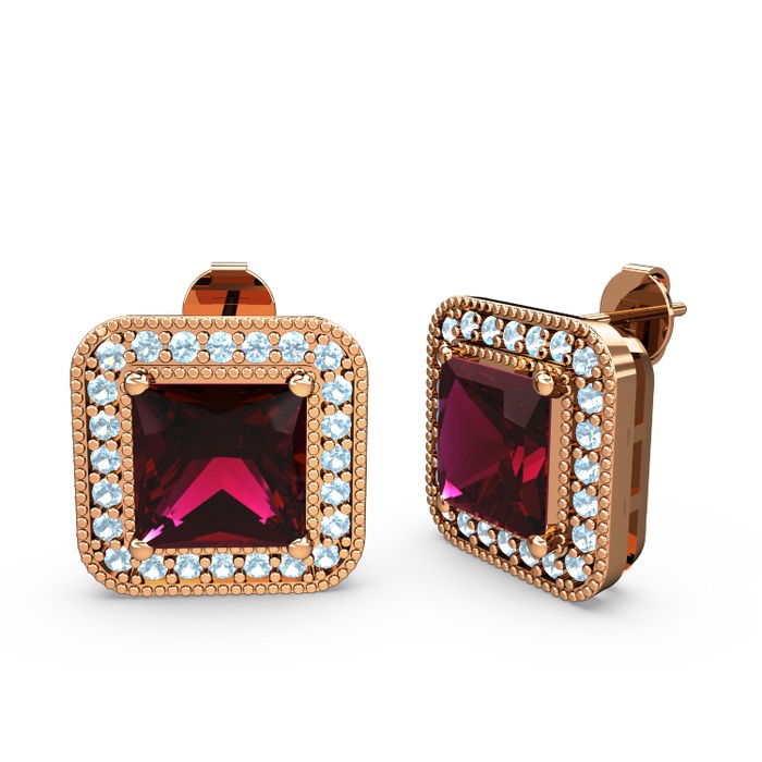 Rodolit garnet ve akuamarin 14 ayar rose altın küpe