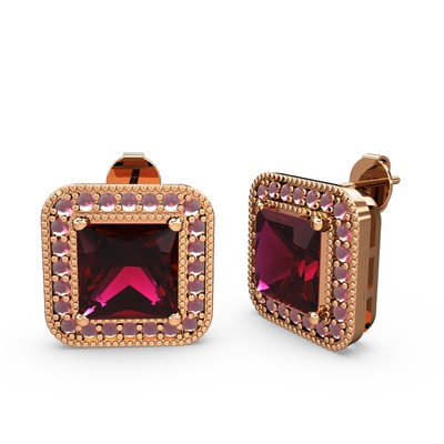 Rodolit garnet ve kök yakut 8 ayar rose altın küpe