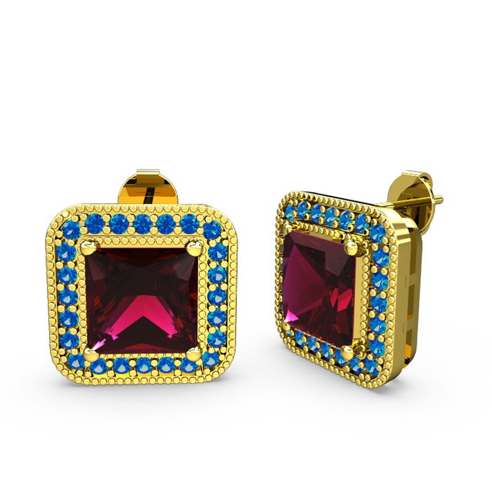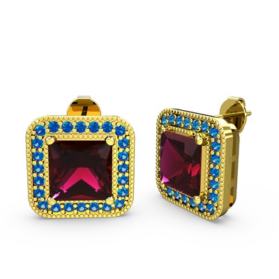 Rodolit garnet ve lab safir 14 ayar altın küpe