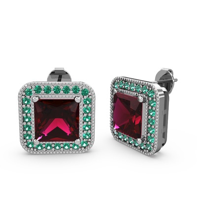Rodolit garnet ve yeşil kuvars 18 ayar beyaz altın küpe