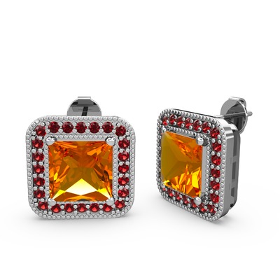 Sitrin ve garnet 14 ayar beyaz altın küpe