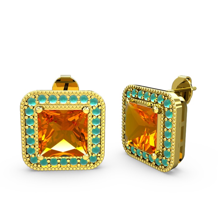 Sitrin ve kök zümrüt 14 ayar altın küpe