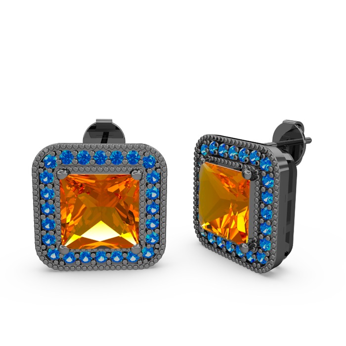 Sitrin ve lab safir 925 ayar siyah rodyum kaplama gümüş küpe