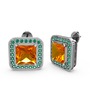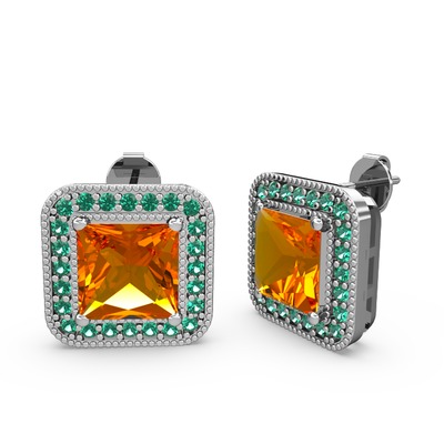 Sitrin ve yeşil kuvars 14 ayar beyaz altın küpe