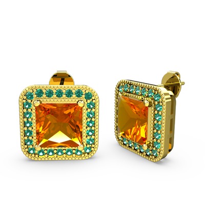 Sitrin ve yeşil kuvars 18 ayar altın küpe