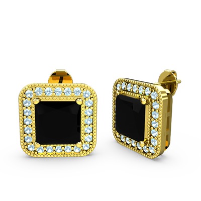 Siyah zirkon ve akuamarin 18 ayar altın küpe