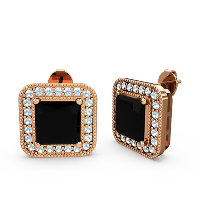 Siyah zirkon ve akuamarin 18 ayar rose altın küpe