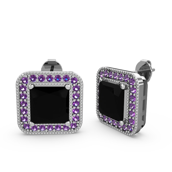 Siyah zirkon ve ametist 18 ayar beyaz altın küpe