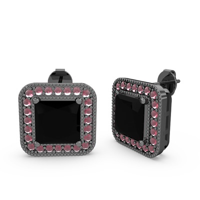 Siyah zirkon ve kök yakut 925 ayar siyah rodyum kaplama gümüş küpe