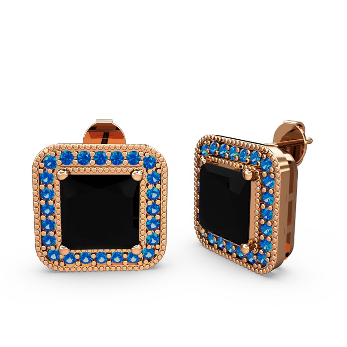 Siyah zirkon ve lab safir 14 ayar rose altın küpe