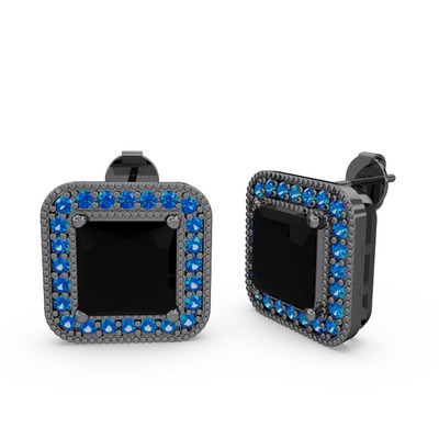 Siyah zirkon ve lab safir 925 ayar siyah rodyum kaplama gümüş küpe