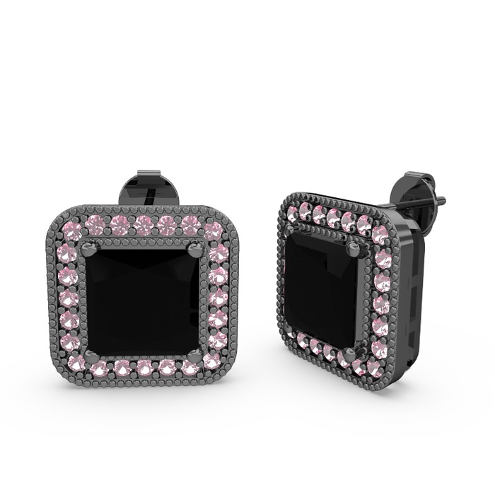 Siyah zirkon ve pembe kuvars 925 ayar siyah rodyum kaplama gümüş küpe