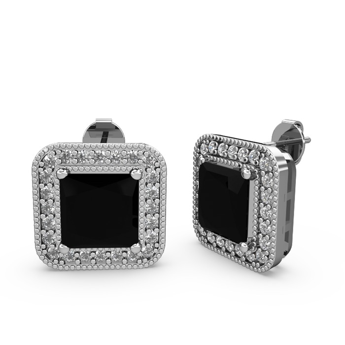 Siyah zirkon ve pırlanta 14 ayar beyaz altın küpe (0.528 karat)