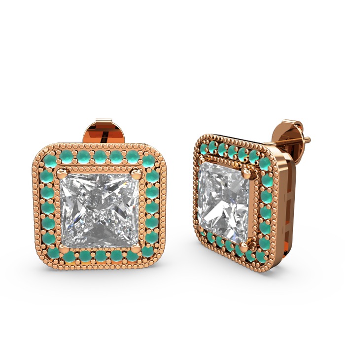 Swarovski ve kök zümrüt 18 ayar rose altın küpe