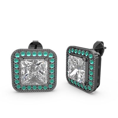 Swarovski ve kök zümrüt 925 ayar siyah rodyum kaplama gümüş küpe