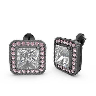 Swarovski ve pembe kuvars 925 ayar siyah rodyum kaplama gümüş küpe