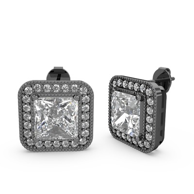 Swarovski ve pırlanta 925 ayar siyah rodyum kaplama gümüş küpe (0.528 karat)