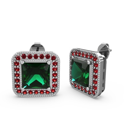 Yeşil kuvars ve garnet 925 ayar gümüş küpe